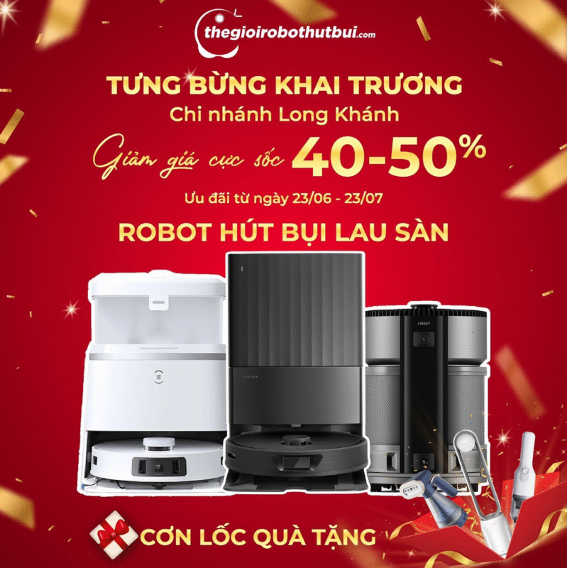 Ngày 23/06/2024 Thegioirobothutbui.com đã tưng bừng khai trương showroom robot hút bụi lau nhà đầu tiên tại TP. Long Khánh.